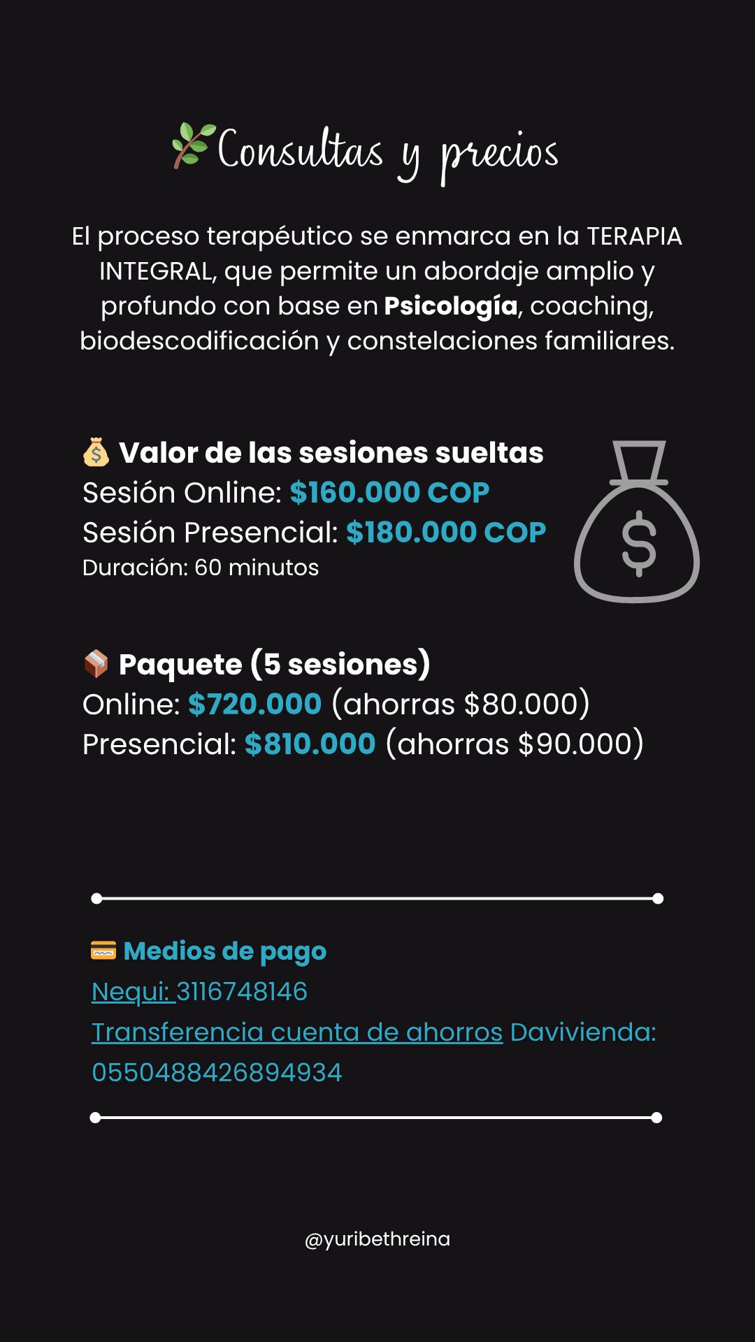 Mi experiencia durante la sesión fue bastante positiva. Me sentí 100% escuchada y considero que se propició un ambiente seguro en el que seguramente empezaré un camino de transformación muy valioso. La doctora Yuribeth fue bastante empática y ha estado muy atenta posterior a ese primer encuentro.